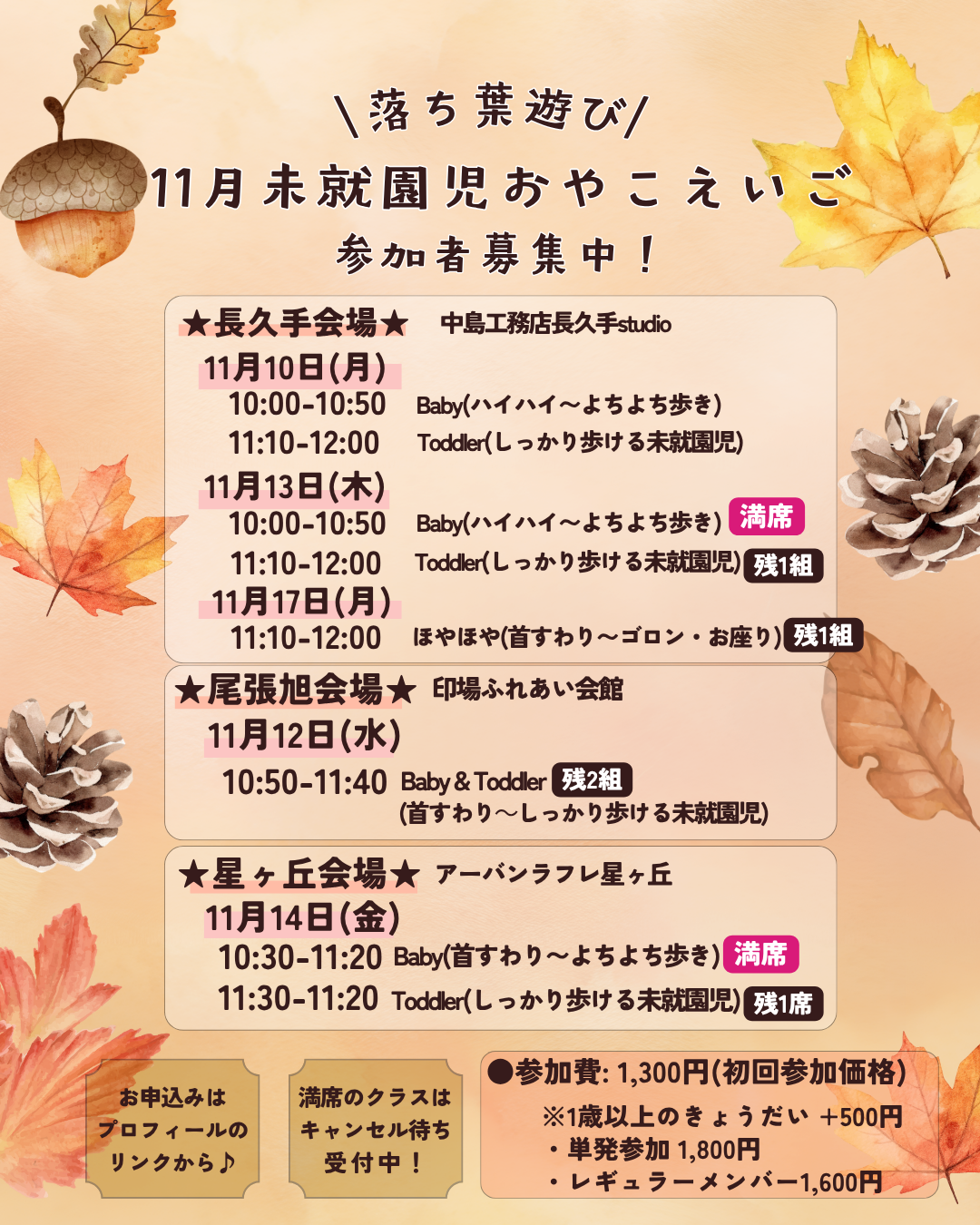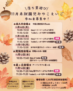 ※11/17は学校休みの為、講師の子ども(小3)も同伴させていただきます。